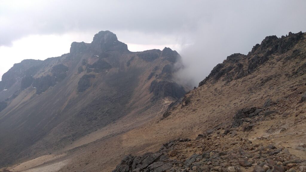 ☝プエブラ側4600m地点。イスタシワトル山て女性が仰向けに寝ている姿をしているのですが、 奥が足先の部分で、Amacuilecatlという正式呼称があります。てっぺんは4703mの高さ。