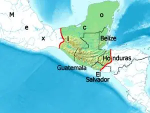 南北に延びる縦長のマヤ圏の南半分に位置します。