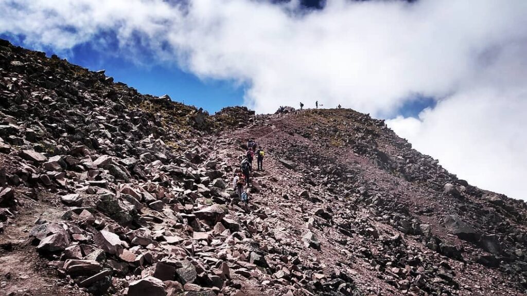 14日午後に私たちが宿泊しているホテルに迎えに来てくださり、マリンチェ峰近くの街で1泊。次の日の朝7:30にホテルを出発しマリンチェ峰へ。標高4400mの山頂目指して歩き始め、歩くこと4時間30分で頂上へ。山頂では岩崎さんがコーヒーをごちそうしてくださり、疲れも和らぎました。また持参したインスタントラーメンを食べ、お腹も満足でした。登山のツアーを依頼すると、昼食はサンドイッチとフルーツだけ、なんてことがよくありますが、今回のように温かいコーヒーやラーメンを食べられたのは貴重な体験でした。その後2時間かけて下山、この日はメキシコシティまで送っていただきました。